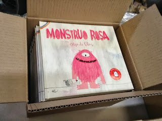 Esta es la versión de Monstruo Rosa que finalmente utilicé para el cuento. Le incorporé orejas, brazos largos para poder hacer los gestos, un ojo muy grande con pestañas como las dibujan las niñas y niños, pelos en las piernas y los brazos, uñas de pies y manos pintadas de rosa y el pelo lo dibujé de manera más suelta.